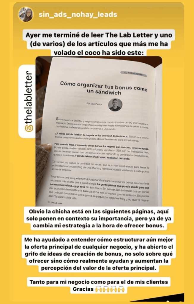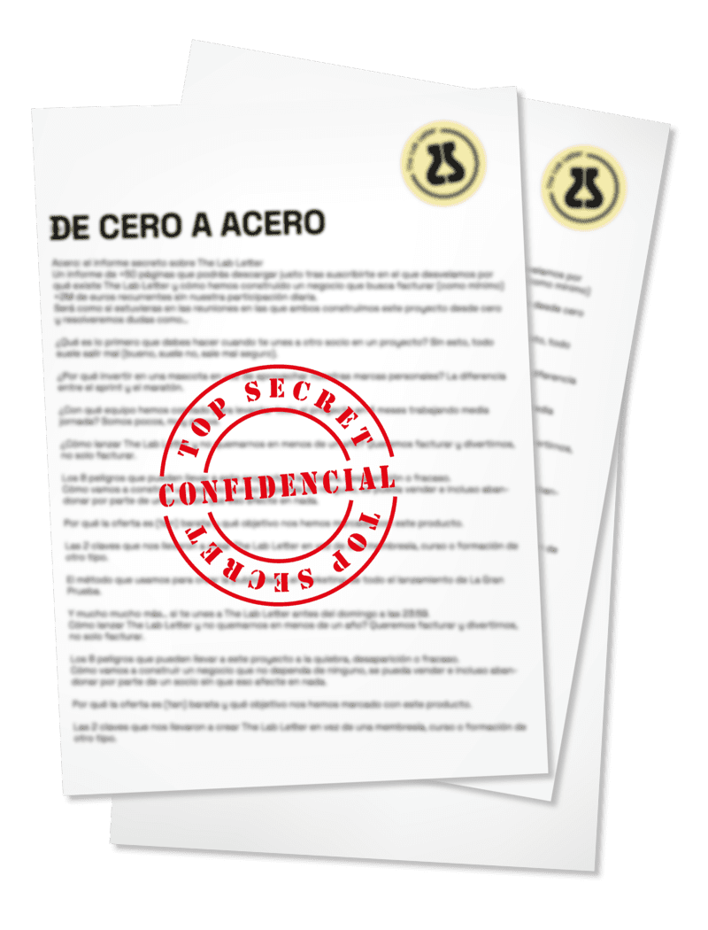 Un informe de +50 páginas que podrás descargar a partir del 7 de marzo en el que desvelamos por qué existe The Lab Letter y cómo hemos construido un negocio que busca facturar (como mínimo) +2M de euros recurrentes sin nuestra participación diaria.